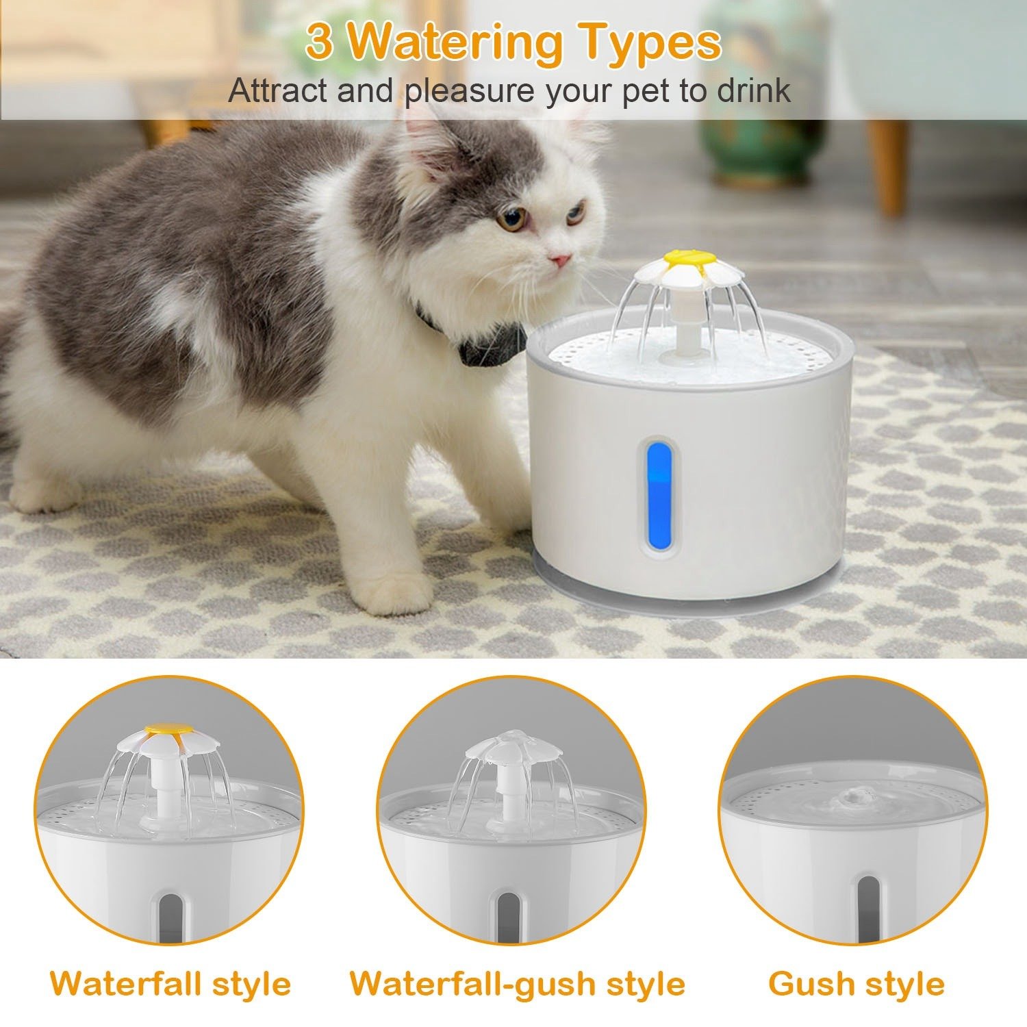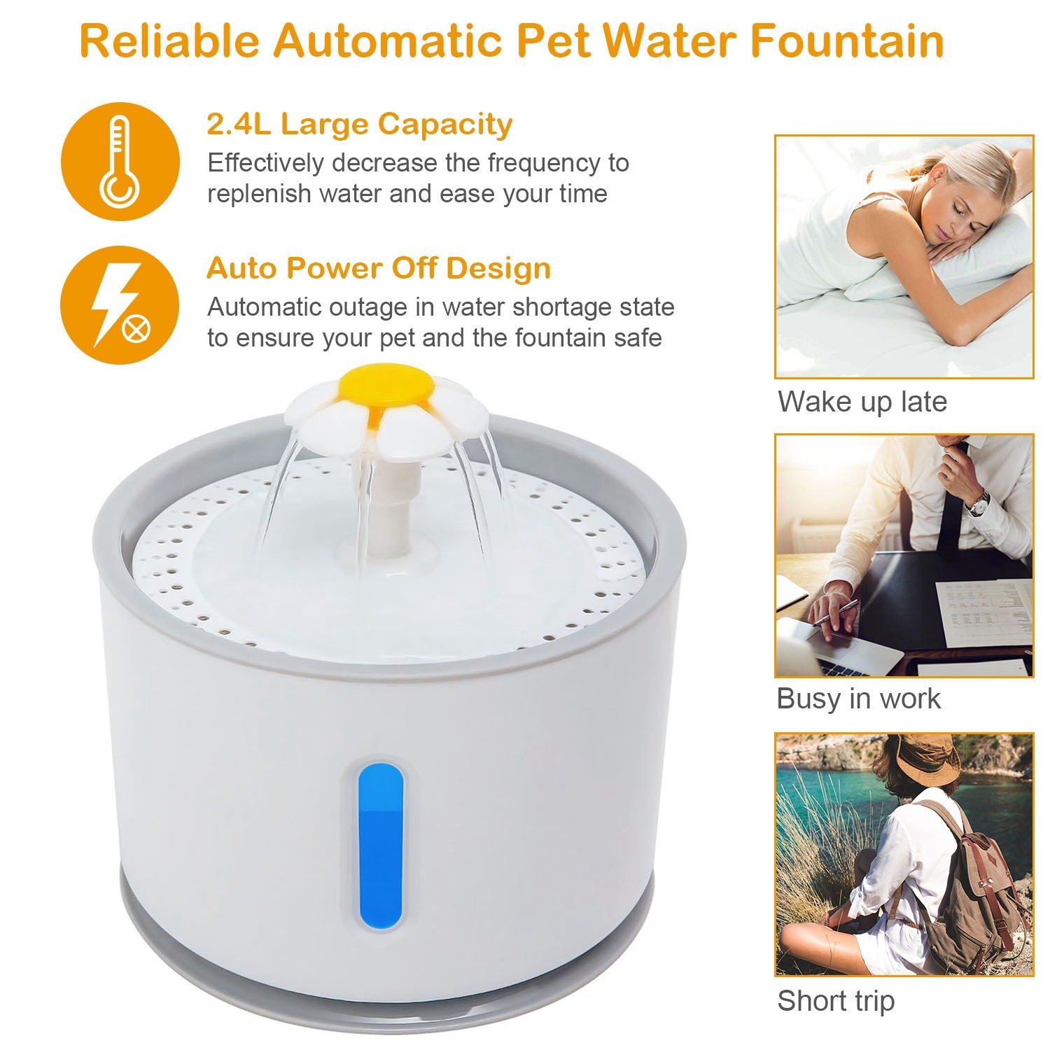 Home > 2.4L Automatic Dog Cat Water Fountain Electric LED Pet Flower Water Dispenser Ultra Silent Health Cat Waterer Auto Off Level Window