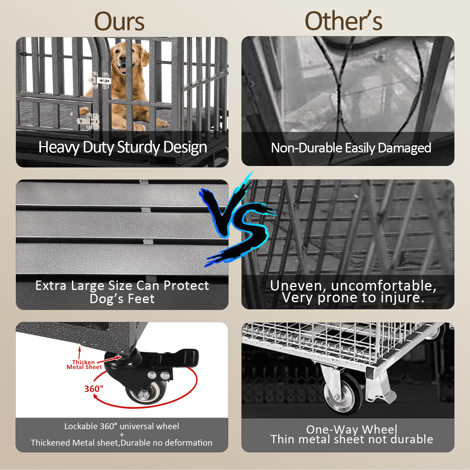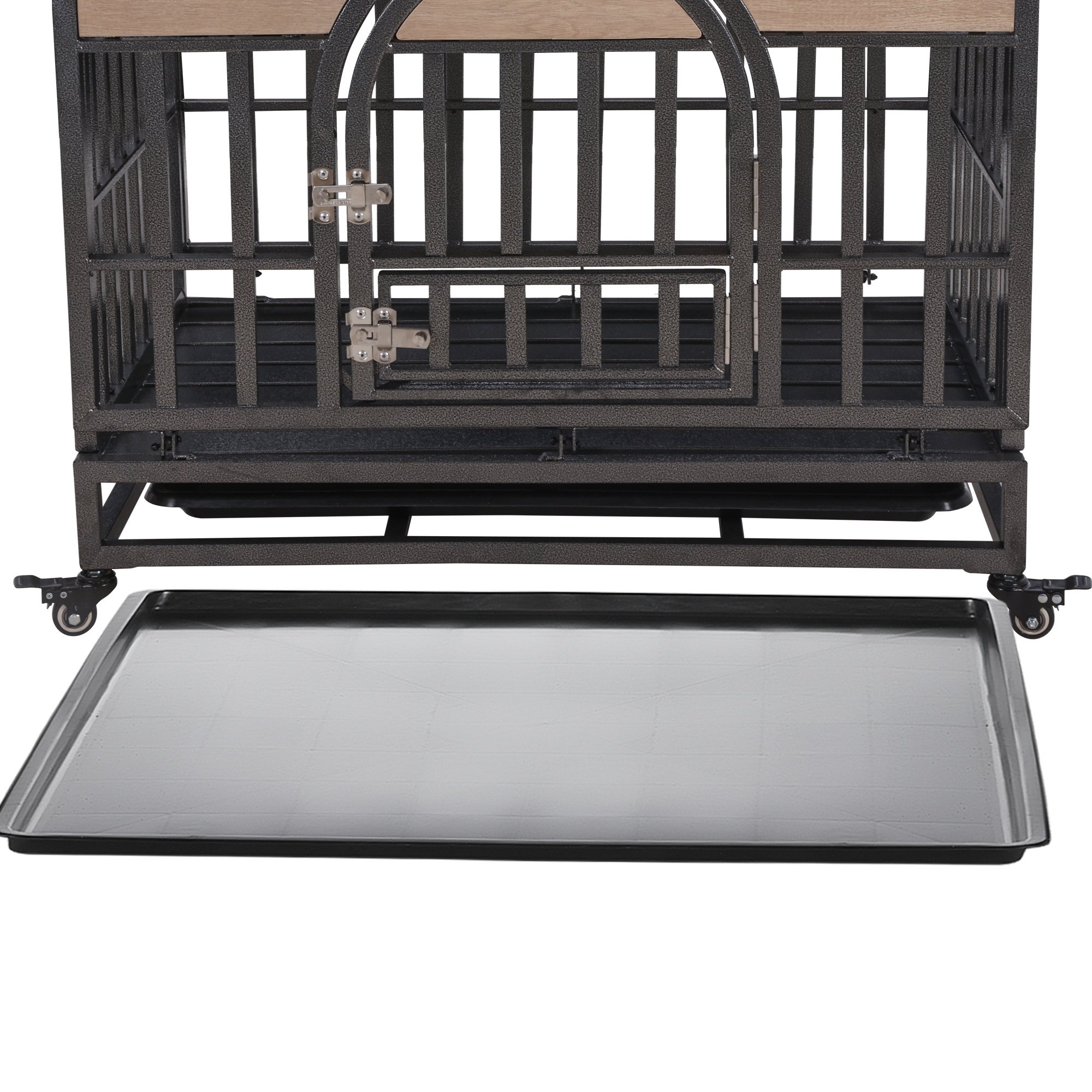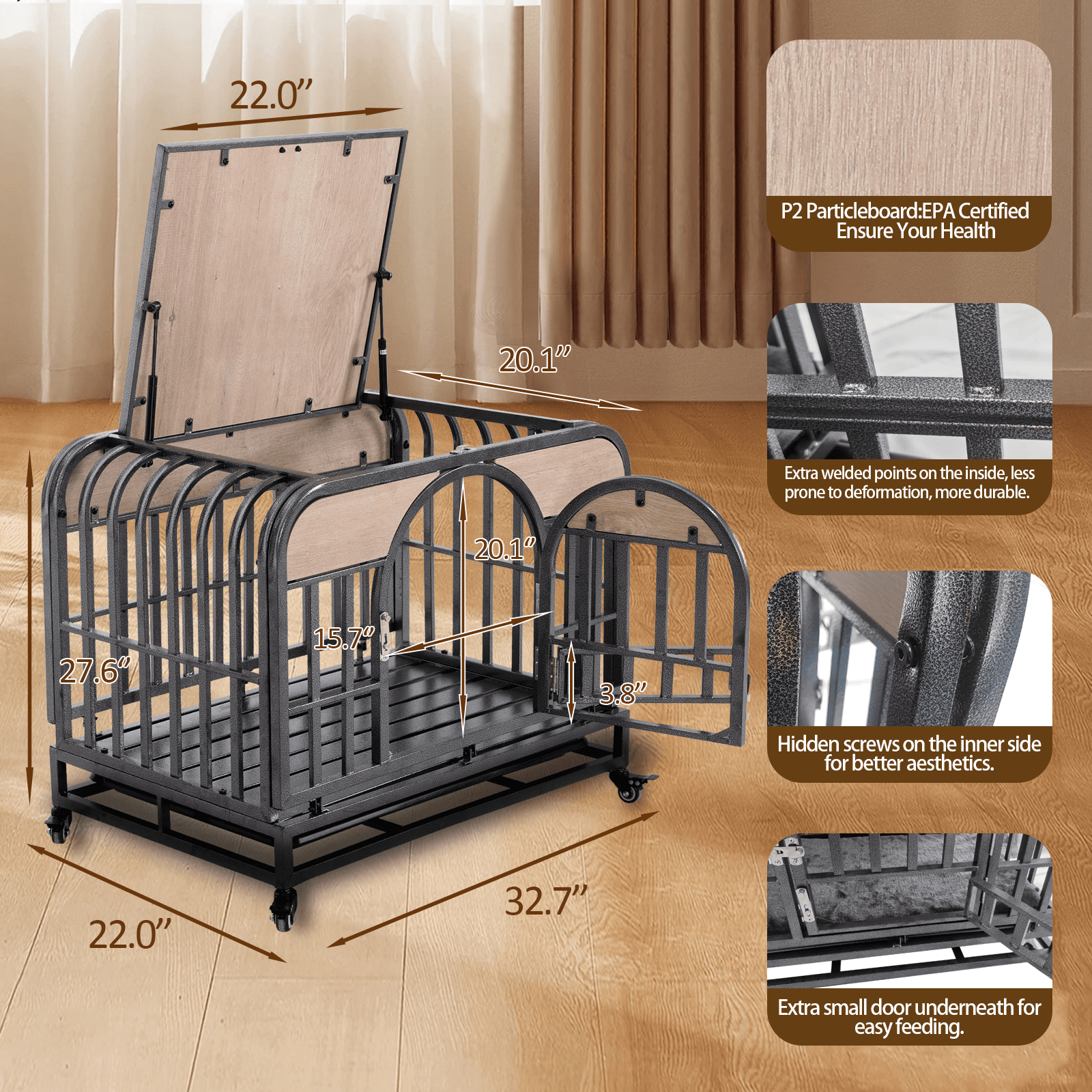 32in Heavy Duty Dog Crate, Furniture Style Dog Crate with Removable Trays and Wheels for High Anxiety Dogs