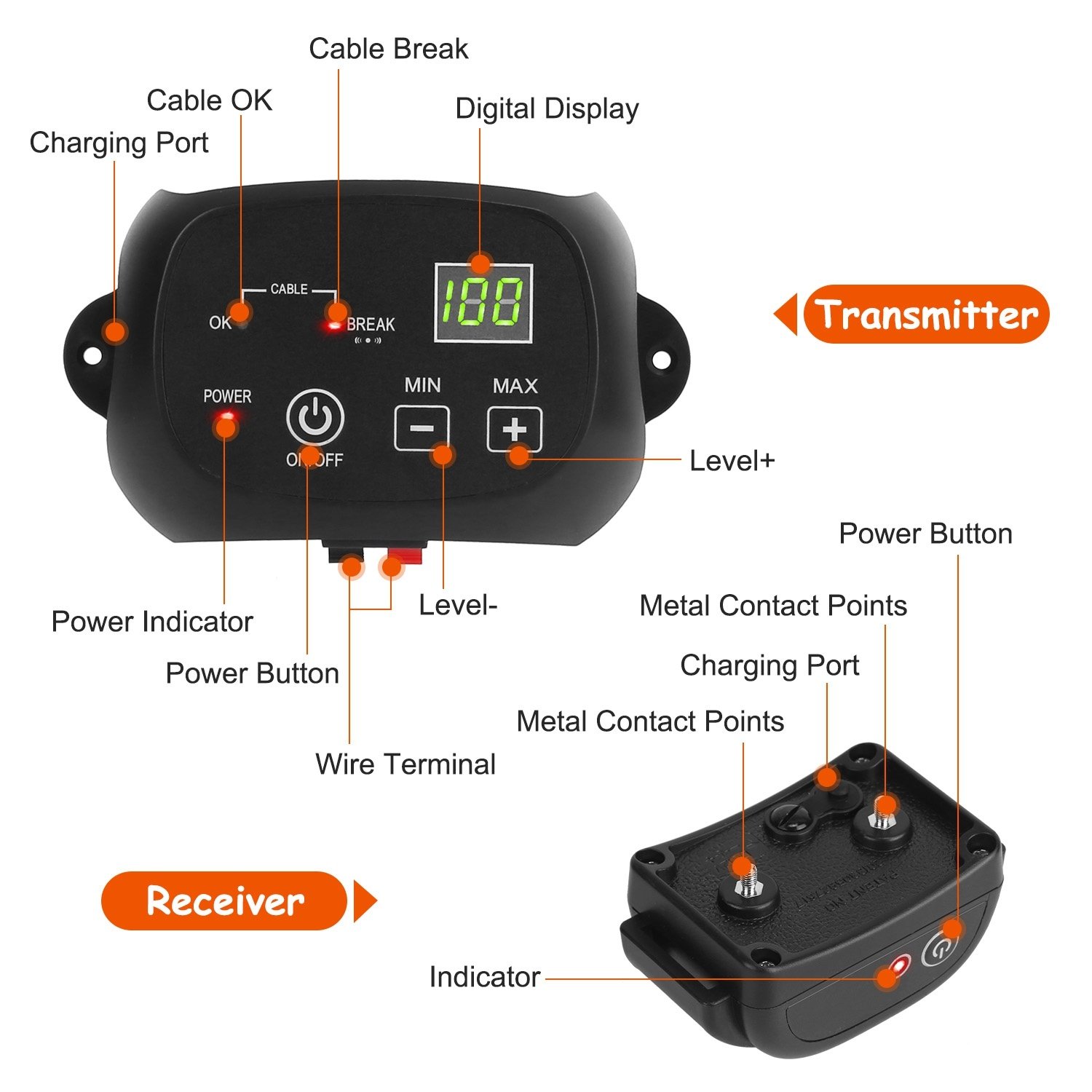 1.The transmitter, receiver and boundary wire forms an effective fencing system together to deter our dogs from the designated area