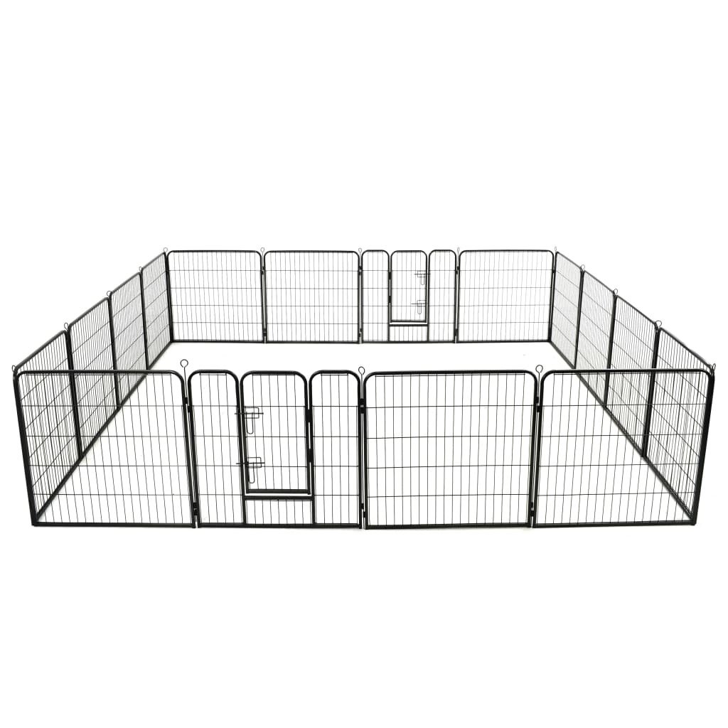 Dog Playpen 16 Panels Steel 31.5"x31.5" Black