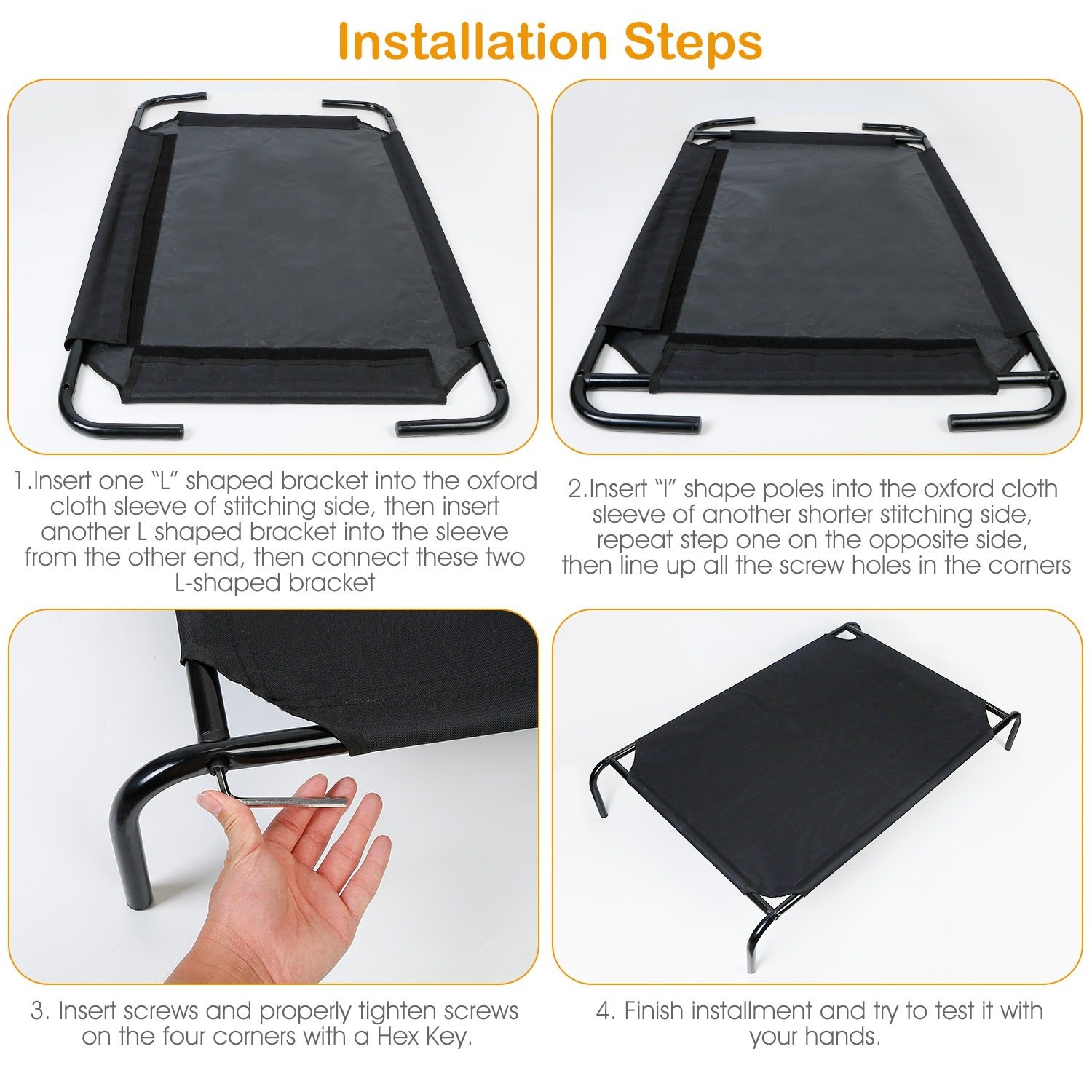 *Breathable & Durable Made*:Made from heavy-duty steel and high-density oxford fabric materials,well-built frame helps the pet bed stable and safely elevated for your dog to rest easy on. Durable sleeping surface supports your pets comfortably and resists rips from claws