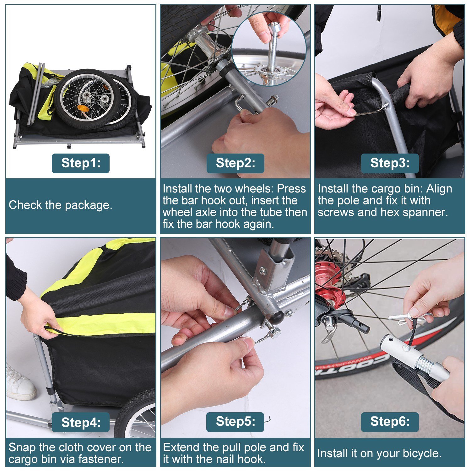 * Foldable & Easy To Detach*: This bicycle trailer can be installed quickly and easily according to the instruction. It can be folded for easy storage after detaching the rod on the bin. And the wheel can be detached quickly after taking out the tow bar. Save more space for you when it's not in use.