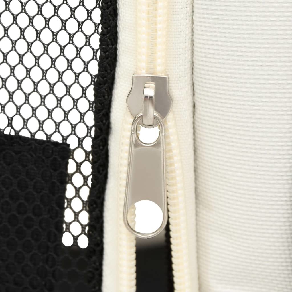This playpen, with the dimensions of 43.3"x43.3"x22.8", is perfect for using at home or travelling. It includes a carrying bag for convenient storage. It is lightweight and yet very sturdy, thanks to the strong steel frame. The mesh roof and door can be opened or closed quickly with the zipper. The side nets ensure good air circulation and great visibility. Additionally, the side pockets are suitable to keep small items, like toys. This run cage can be easily stored with its foldable design when not in use.Color: Black and creamMaterial: Polyester, steelDimensions: 43.3" x 43.3" x 22.8" (W x D x H)Size of each panel: 17.7" x 22.8" (W x H)Includes 8 panelsSturdy frameWith zipperFoldable designIncludes carrying bagCalifornia Proposition 65