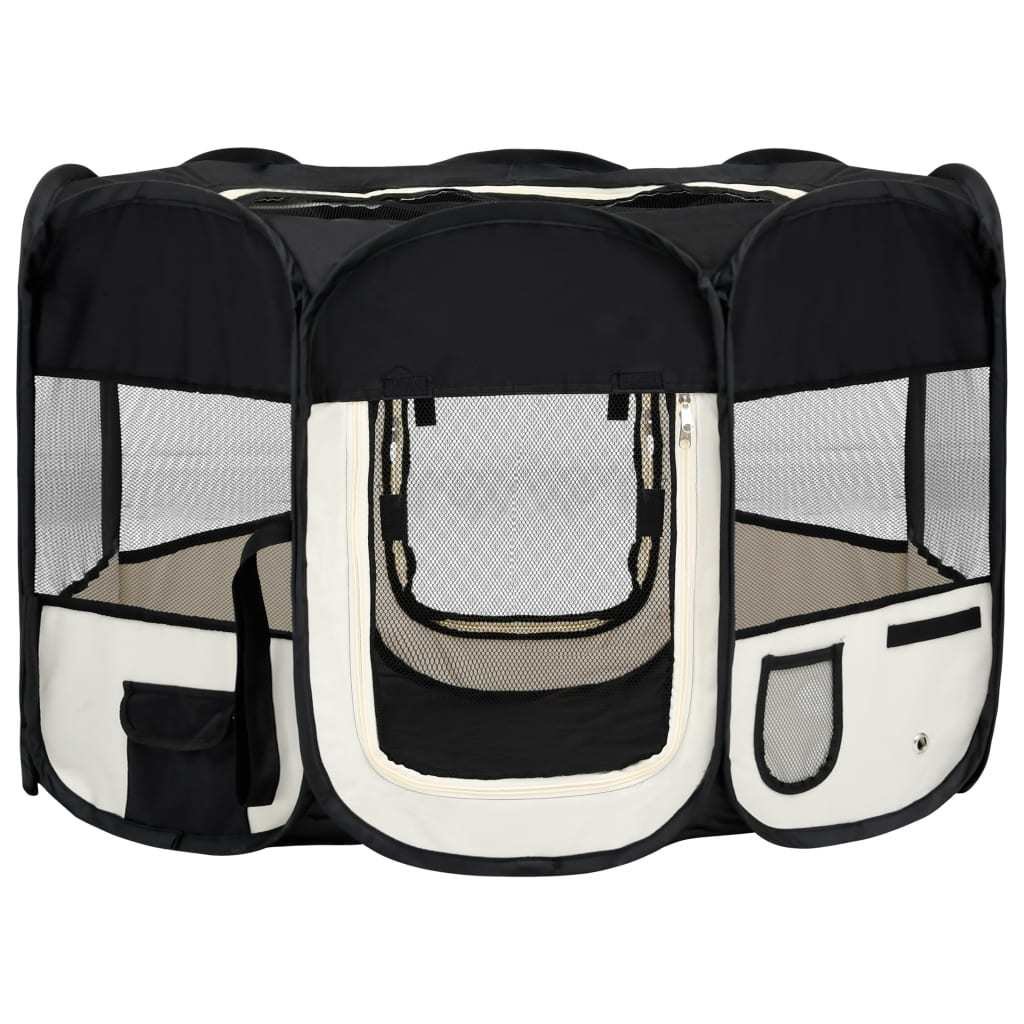 Foldable Dog Playpen with Carrying Bag Black 43.3"x43.3"x22.8"