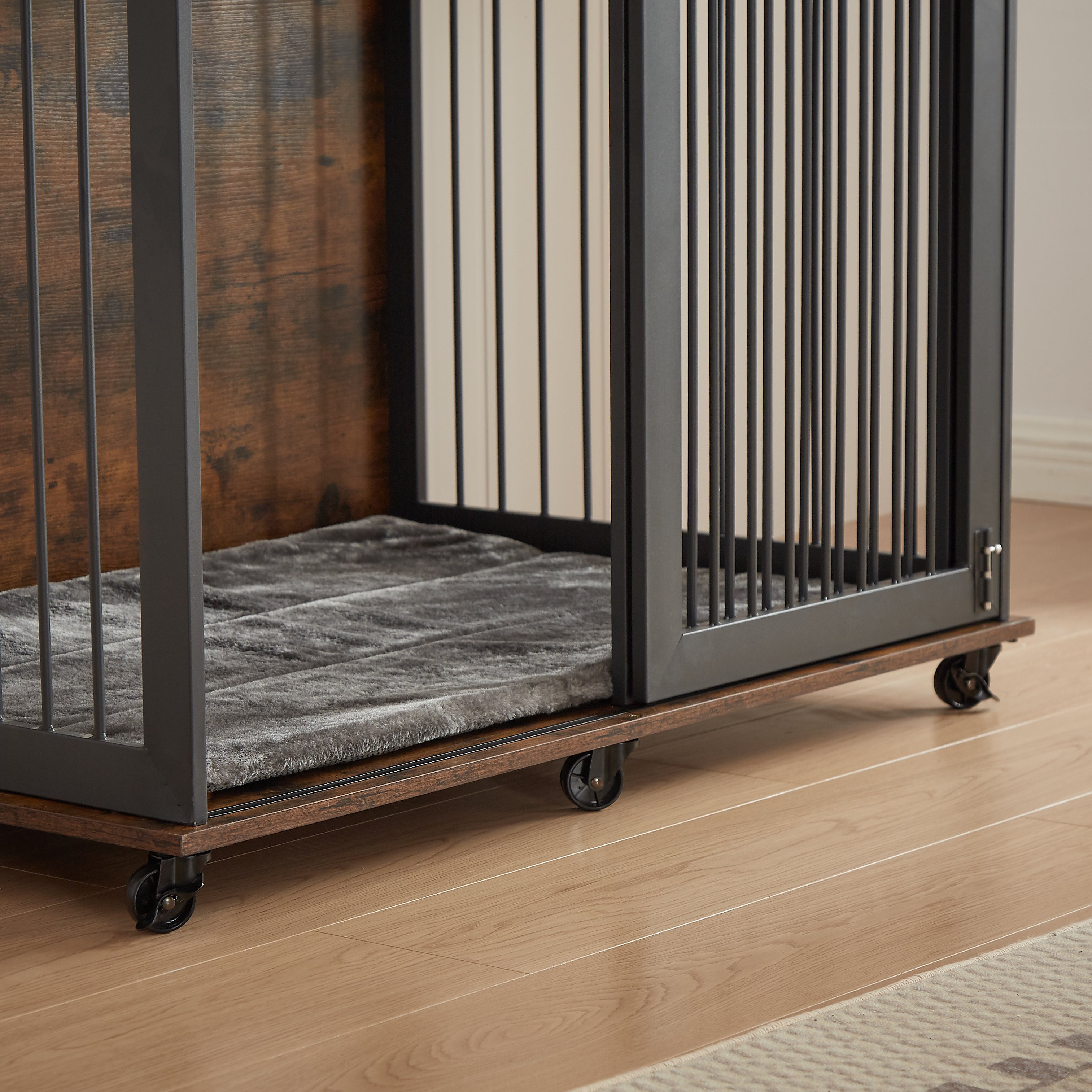 Sturdy Iron Framed DoorThe strong iron frame door makes this dog crate stronger, increases the lifespan of the dog crate, and also makes it have a unique metal style.