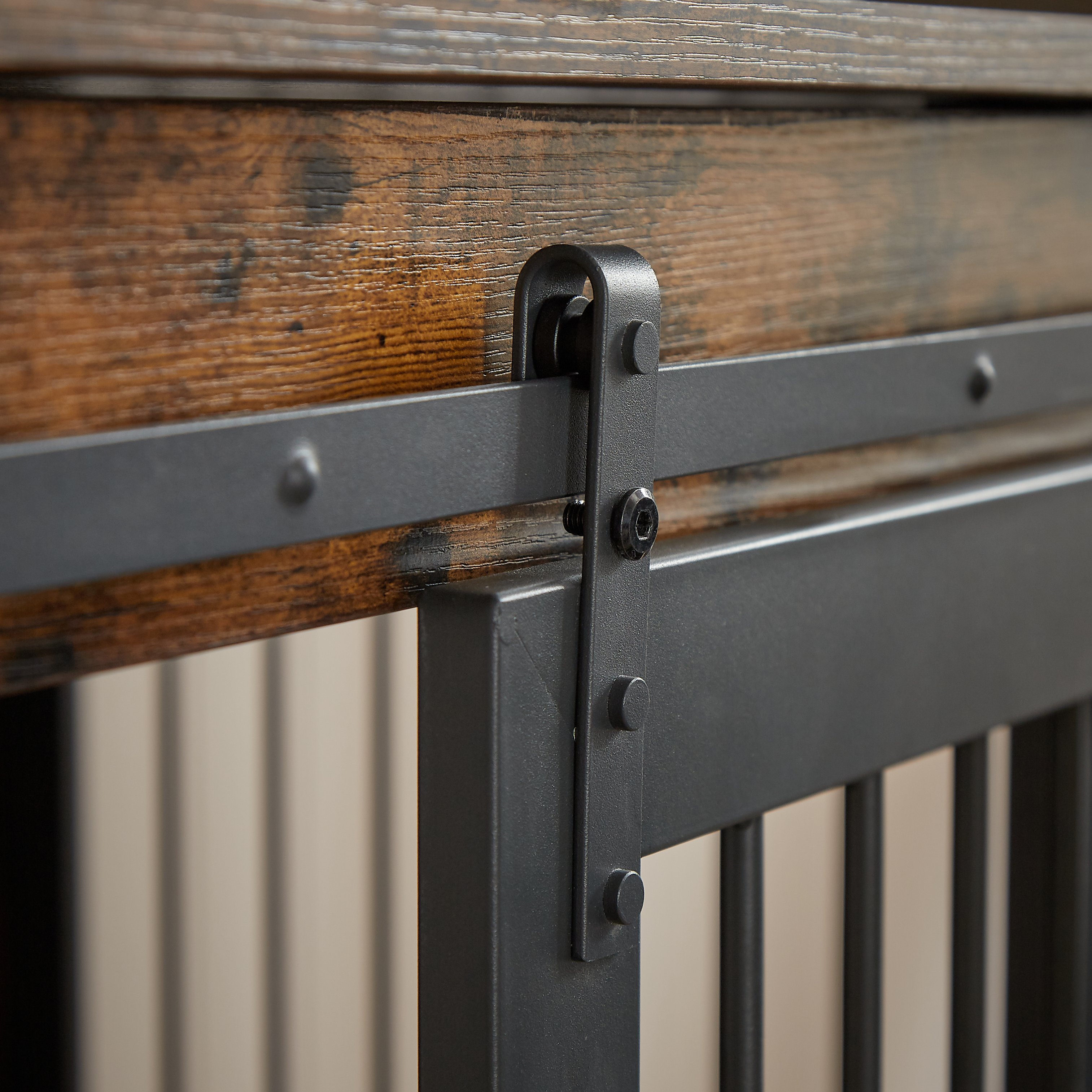 Heavy iron doors give an industrial feel, are stronger, more stable, and prevent your furry friend from chewing on the door frame.