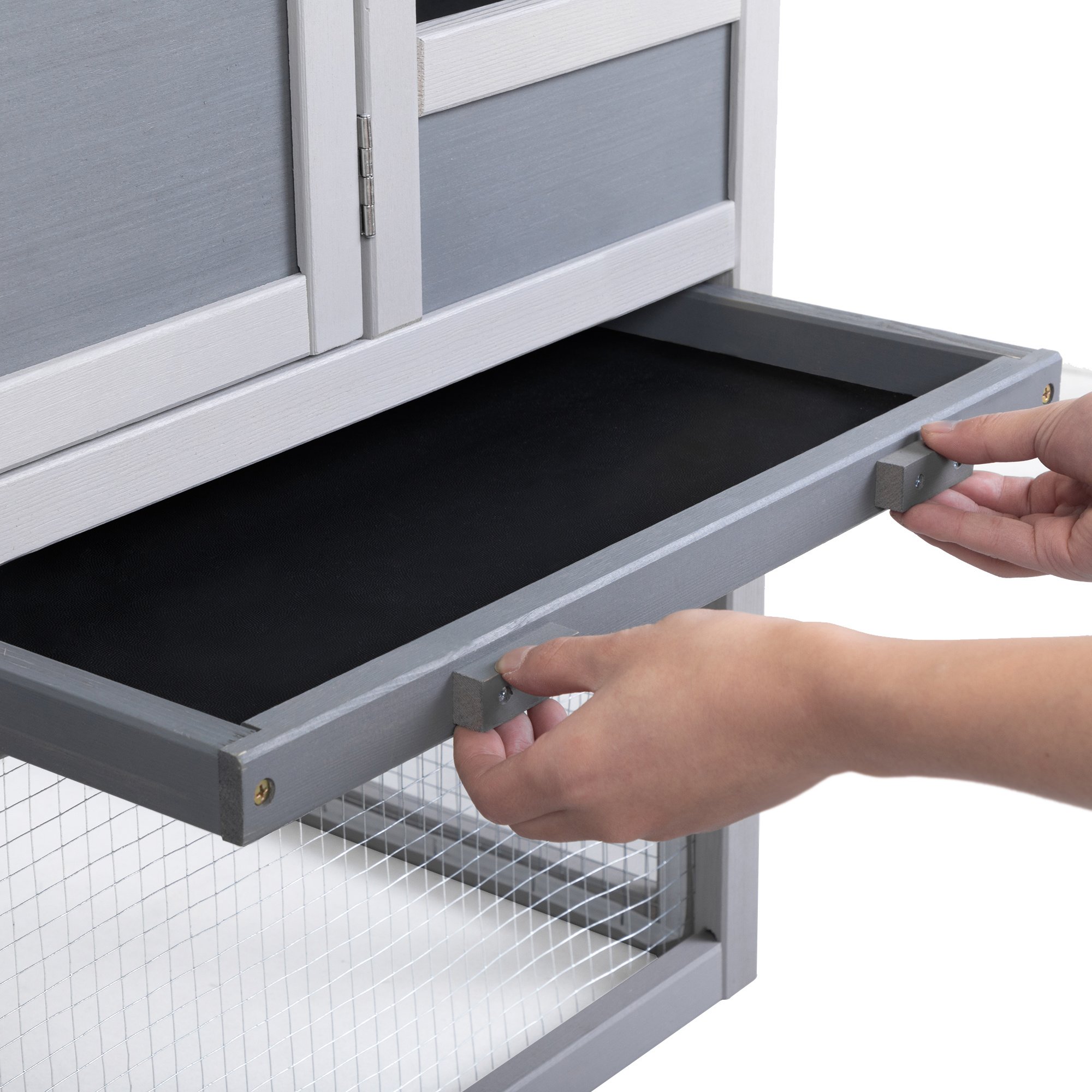 Indoor Outdoor Rabbit Hutch, Bunny Cage with Run, Pull Out Tray, Guinea Pig House for Small Animals, Gray