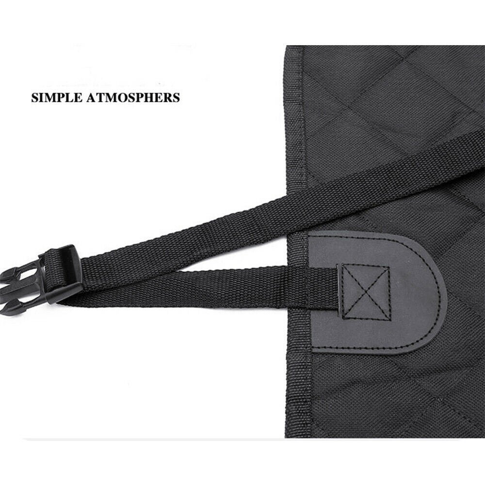 Features:Pet Car Rear Seat Cover1.This pet seat cover is made of5 layers of high-quality materials:600D Oxford cloth + pp cotton + polyester lining + anti-skid net + PVC waterproof coating.2.2opening slips for seat belts to go through, to buckle up pets or passengers andensure safety.3.4 adjustable straps attach to the auto front and rear headrests could fit for all kinds of vehicles.4.Nonslip backsideand seat anchor make this cover firmly be fixed on the car seat and reduce the discomfort caused by the sliding frequently.5.Hammock design creates a barrier to keep pets from climbing into front of vehicles while protects your pet from falling on the floor.6.Easy to install:justattach4 straps to headrests, you can adjust the headrest straps to fit your back seats.